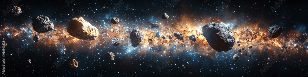Poster a space scene with a large number of rocks and debris. the rocks are scattered throughout the image, - Posters Poster a space scene with a large number of rocks and debris. the rocks are scattered throughout the image, - Posters