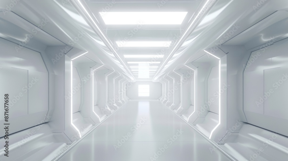 The watermark will not be included on Poster.: A spaceship or science lab in white, with a sci-fi corridor -
