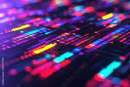 The watermark will not be included on Poster.: A vibrant, abstract image showcasing colorful lines and patterns against a dark background, evoking