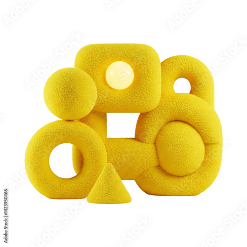 The watermark will not be included on Poster.: A vibrant assembly of yellow geometric shapes: exploring the playful interaction of forms and colors