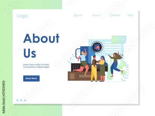 The watermark will not be included on Poster.: About us vector website landing page design template