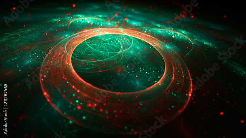 The watermark will not be included on Poster.: Abstract 3d fractal colorful circles illustration in cyan and red color