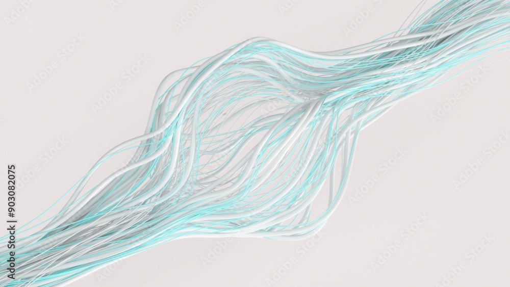 Poster abstract 3d render of flowing white and blue lines on a light background