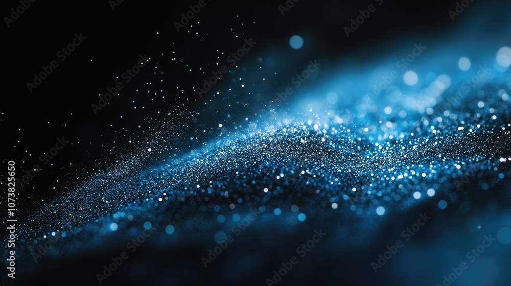 The watermark will not be included on Poster.: Abstract backdrop featuring blue dust particles and light distribution in a bokeh style against a bl