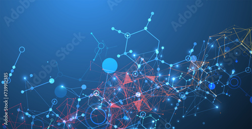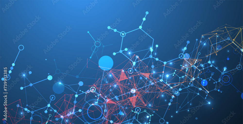 Poster abstract background on a scientific and technological theme. an image of hexagons on a dark blue bac