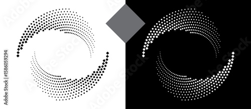 The watermark will not be included on Poster.: Abstract background with squares in circle - art design spiral as logo or icon - a black figure on a w