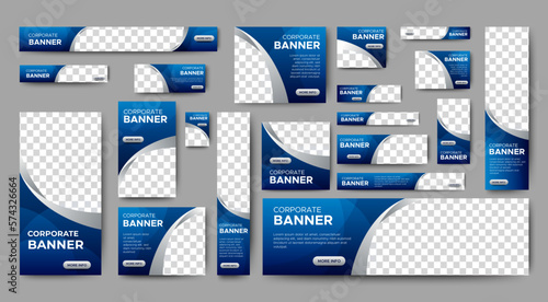 Abstract banner design web template set, horizontal header web banner - modern gradient blue cover hePoster