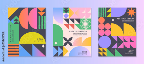 Poster : Abstract bauhaus geometric pattern backgrounds with copy space for text - trendy minimalist geometric