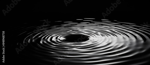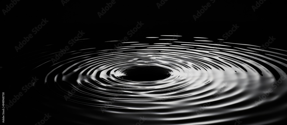 Poster abstract black and white background showcasing water ripples from a drop in a dark tone creating a m