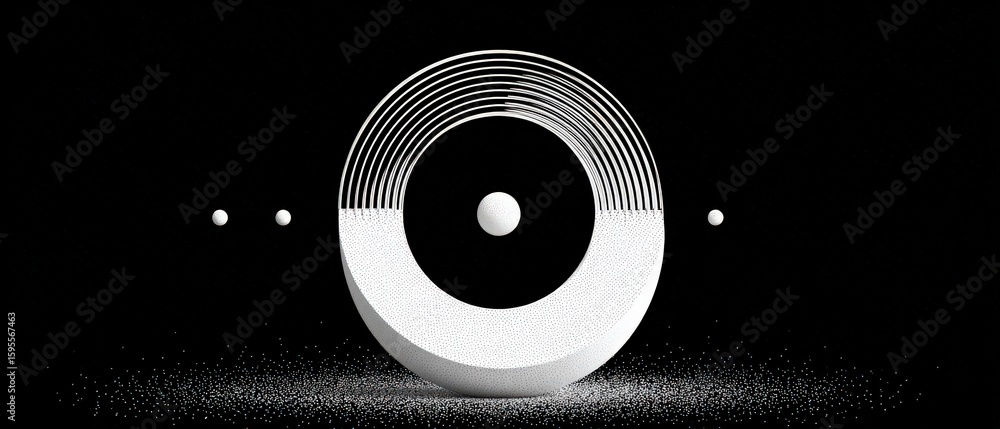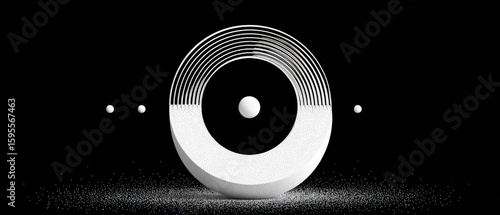 Poster : Abstract black and white geometric design with sphere and circle elements modern minimalist concept