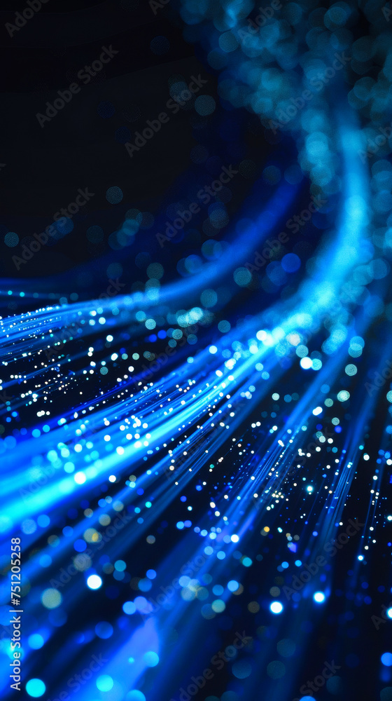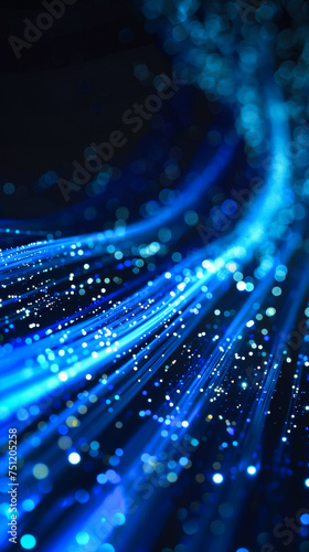 The watermark will not be included on Poster.: Abstract blue data flow light streak over a black background - communication technology and data traf