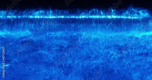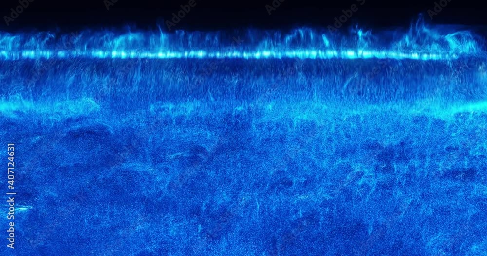 The watermark will not be included on Poster.: Abstract blue wave of fluid particle backward - fluid simulation of turbulent water - 3-d render, 4k s