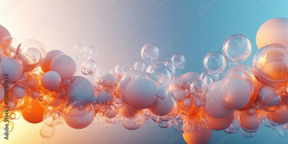 Poster : Abstract bubbles and light: a captivating visual journey through colorful spheres and a dreamlike at
