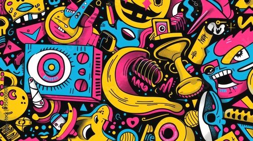 The watermark will not be included on Poster.: Abstract colorful doodle pattern -