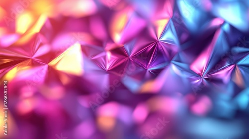 The watermark will not be included on Poster.: Abstract colorful geometric shapes creating a vibrant, dynamic background with depth and texture