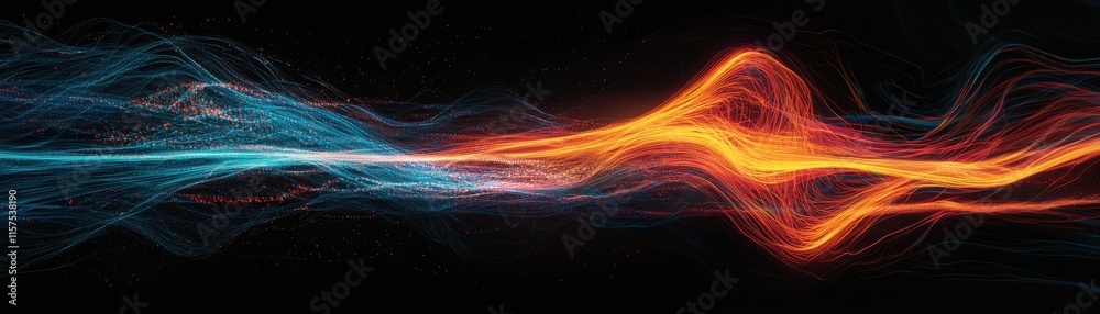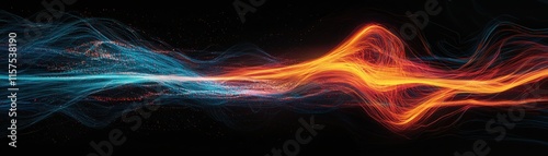 The watermark will not be included on Poster.: Abstract colorful light waves on a dark background -