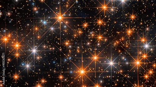 The watermark will not be included on Poster.: Abstract cosmic network - glowing nodes connecting in space