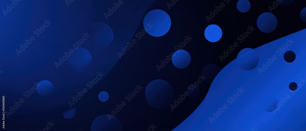 The watermark will not be included on Poster.: Abstract dark blue background with flowing shapes and circles modern backdrop with gradient effect f