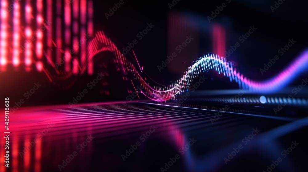 The watermark will not be included on Poster.: Abstract data flow, dynamic curves, neon lights, futuristic background