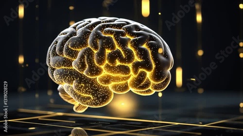 The watermark will not be included on Poster.: Abstract depiction of a glowing brain with intricate details and luminous effects, symbolizing intel