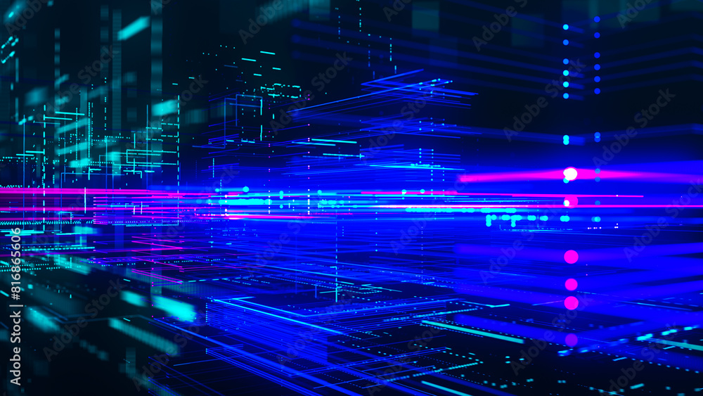 Poster abstract digital, technology tunnel. abstract futuristic sci-fi tunnel with grid of particles and li - Posters Poster abstract digital, technology tunnel. abstract futuristic sci-fi tunnel with grid of particles and li - Posters