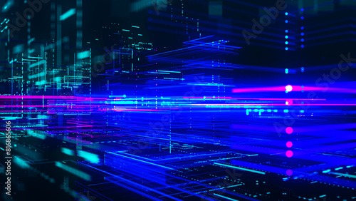 The watermark will not be included on Poster.: Abstract digital, technology tunnel - abstract futuristic sci-fi tunnel with grid of particles and li