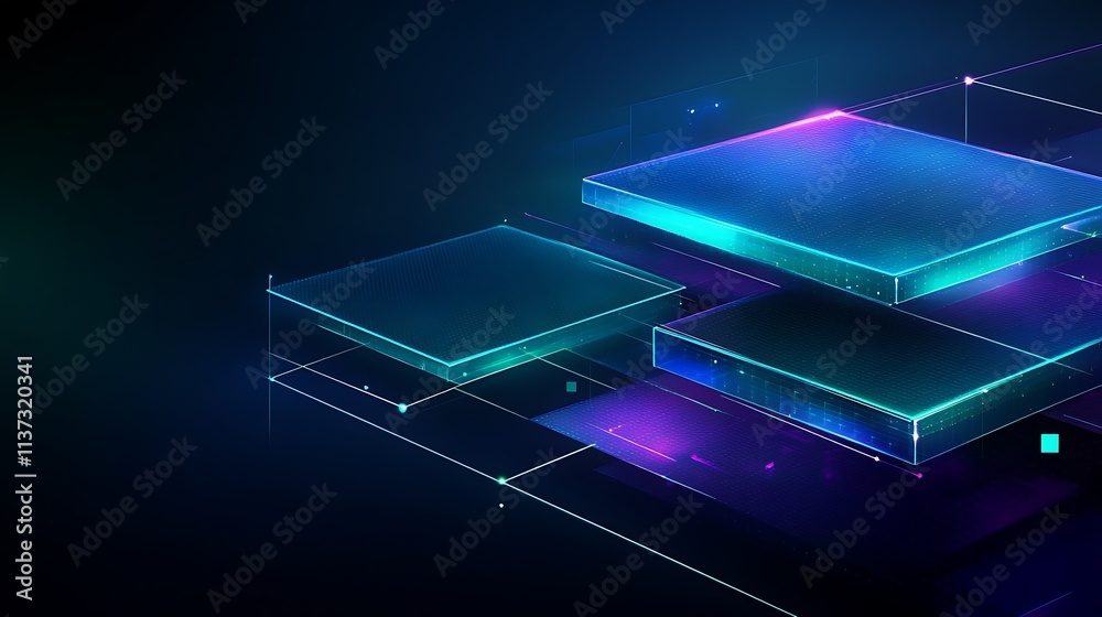 The watermark will not be included on Poster.: Abstract digital background with geometric shapes and vibrant neon colors for technology and design
