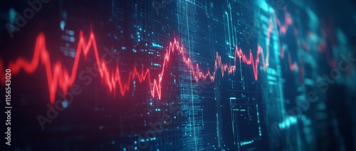 The watermark will not be included on Poster.: Abstract digital background with heart monitor lines and medical data visualization, showing a healt