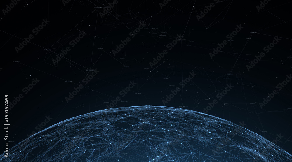 The watermark will not be included on Poster.: Abstract digital sphere with numbers, lines and dots illustration background - view from space -