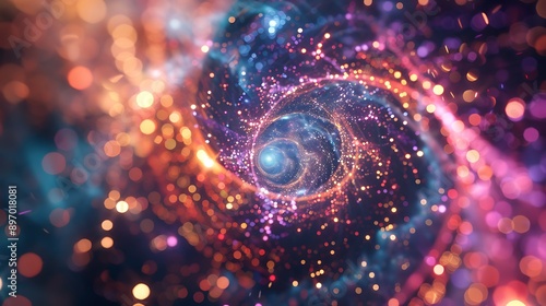 The watermark will not be included on Poster.: Abstract digital spiral with sparkling light for universe cosmic galaxy space concept -
