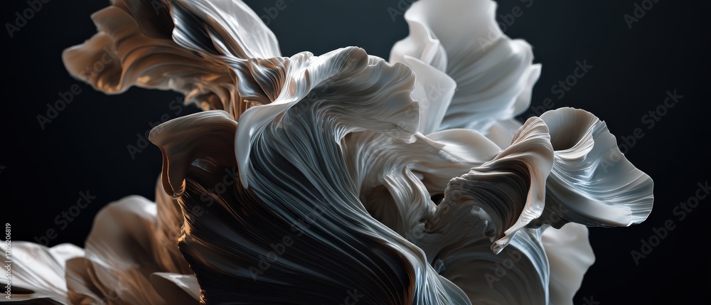 Poster abstract flowing silk fabric in white and gray tones, dynamic wave pattern with smooth texture conce