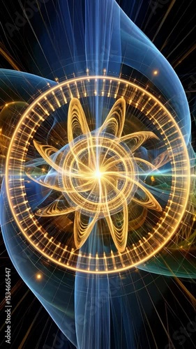 Poster : Abstract fractal energy art featuring a circular gear-like shape with glowing elements and flowing b