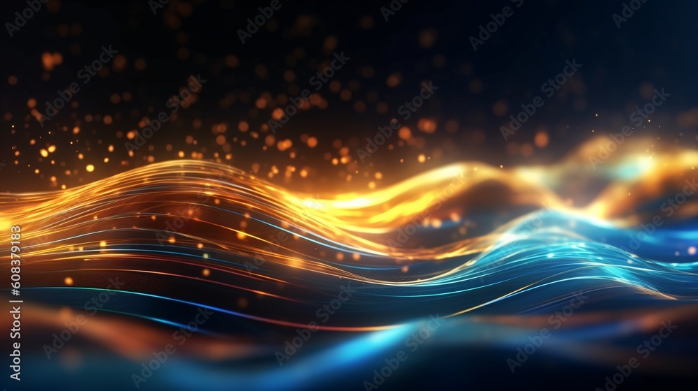 The watermark will not be included on Poster.: Abstract futuristic background with glowing neon lines - generative ai