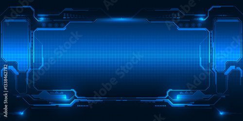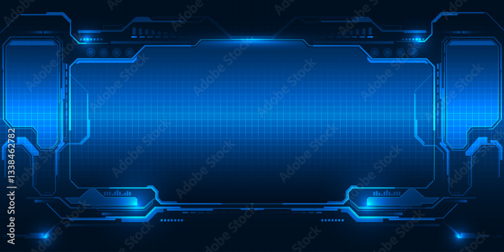 Abstract futuristic digital technology background with grid line field copy space and futuristic digPoster