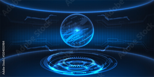 Poster : Abstract futuristic digital technology stage and background and science fiction concepts -