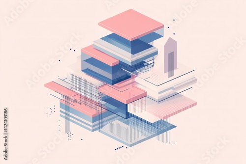 The watermark will not be included on Poster.: Abstract geometric layers in soft pink and blue tones for design use