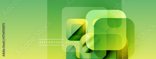The watermark will not be included on Poster.: Abstract geometric shapes overlap, creating vibrant green gradient background - modern design element