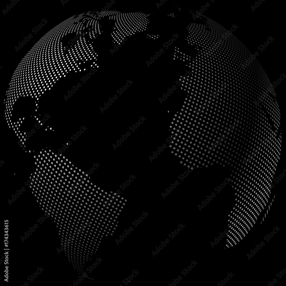 Poster abstract globe with dotted map. black and white halftone effect vector illustration. - Posters Poster abstract globe with dotted map. black and white halftone effect vector illustration. - Posters