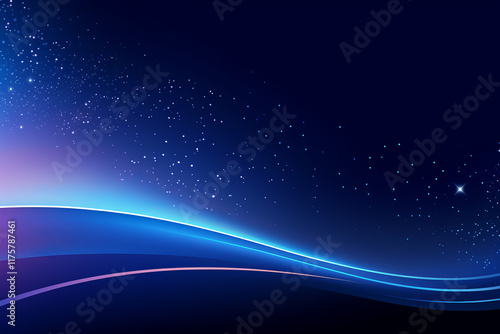 Poster : Abstract glowing blue background with flowing lines and stars in a dark space for presentation slid