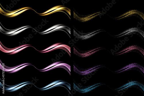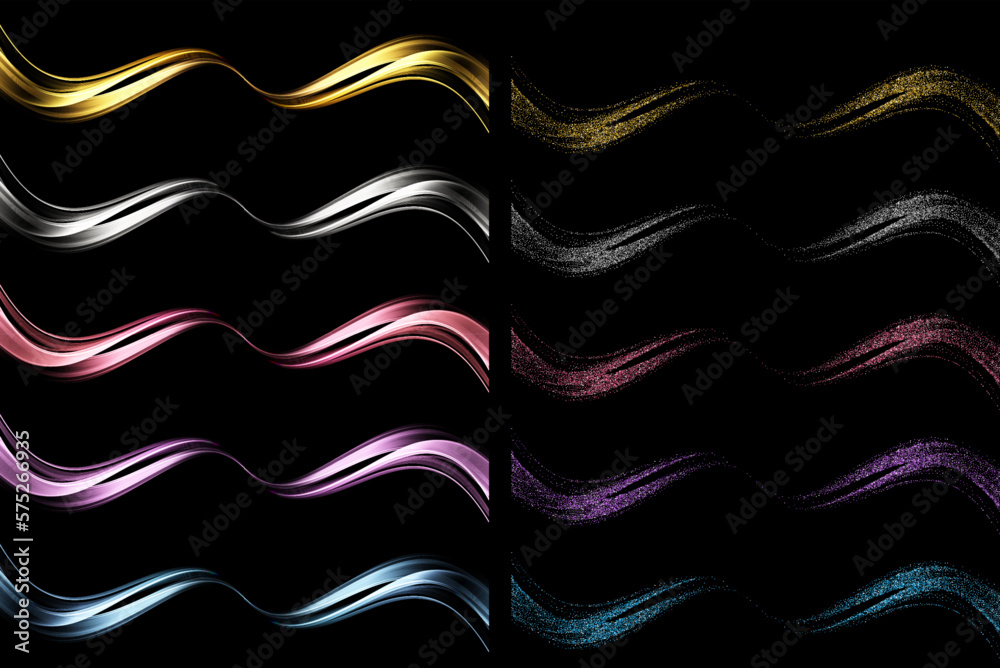 The watermark will not be included on Poster.: Abstract gold light waves - shiny golden moving lines design element with glitter effect on dark back