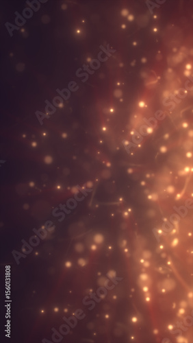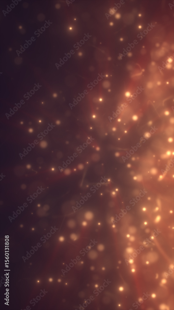 Poster abstract golden particles floating in warm atmosphere, creating a dreamy glowing bokeh effect