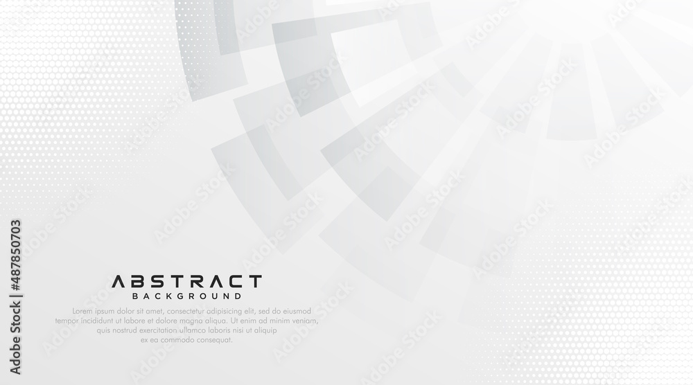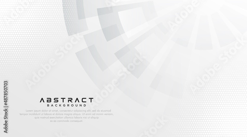 Poster abstract grey and white tech geometric shape background with halftone dots decoration. modern square