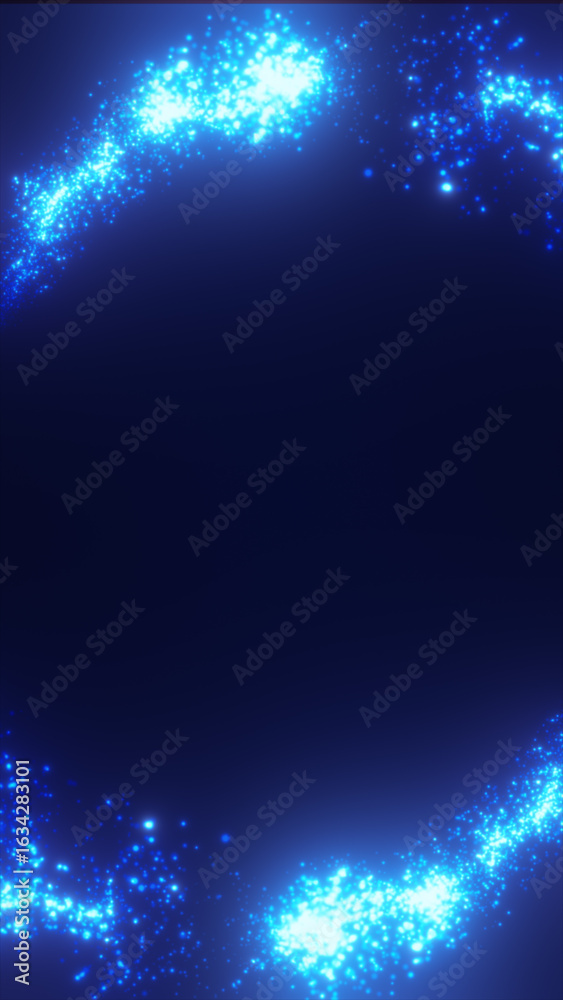 Poster abstract luminous circle frame formed by sparkling blue particles, evoking energy and dynamic techno