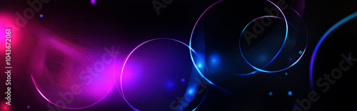 Poster abstract luminous light effect circled lines on dark background, round sparkles and light lines in p