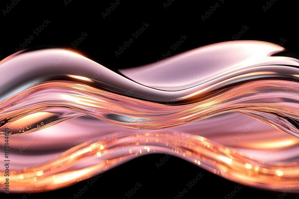 The watermark will not be included on Poster.: Abstract metallic waves with reflections in pink and gold - a versatile background perfect for moder