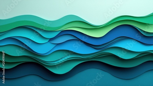 Poster abstract minimalist paper cutout of flowing waves in soft color palette