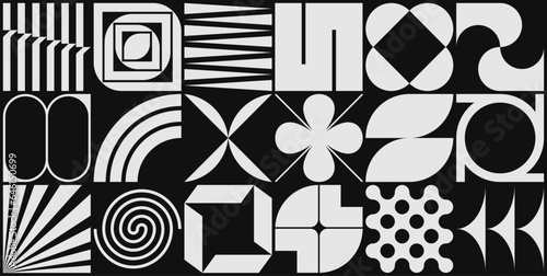 Poster abstract monochrome geometric pattern with modern shapes and elements.