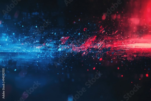 The watermark will not be included on Poster.: Abstract motion background featuring vibrant blue and red streaks with dynamic particles, perfect fo
