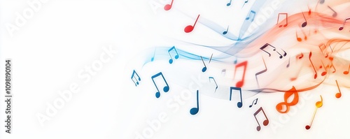 The watermark will not be included on Poster.: Abstract music notes flowing in vibrant colors with a soft backdrop -