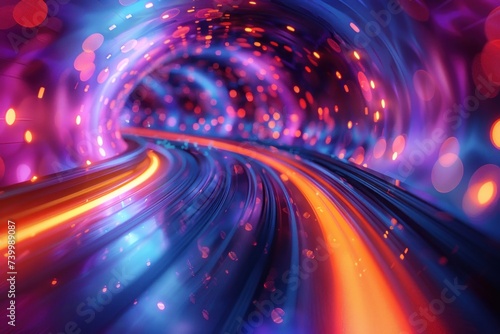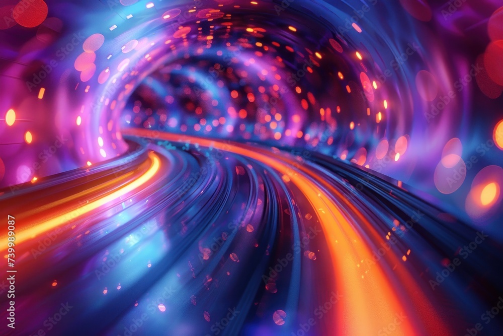 The watermark will not be included on Poster.: Abstract neon light lines creating sense of futuristic speed dynamic and modern background illustrat